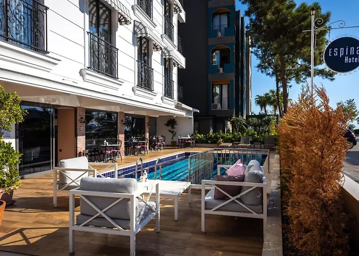 Бульвар Ататюрка находится на расстоянии 7 км от 4-звездочный Espina Hotel, а Торговый центр Терра Сити — примерно в 18 минутах ходьбы. На расстоянии 8 км от этого фантастического отеля располагается Башня Хыдырлык. В 5 минутах пешей прогулки находятся популярные достопримечательности Антальи, например Sezgin Travel. Совсем недалеко от отеля Espina находится автобусная остановка "10114 - Barinaklar-19". Аэропорт Анталья расположен в 5 км от этого стильного отеля, а дорога к нему займет примерно 20 минут на машине.
